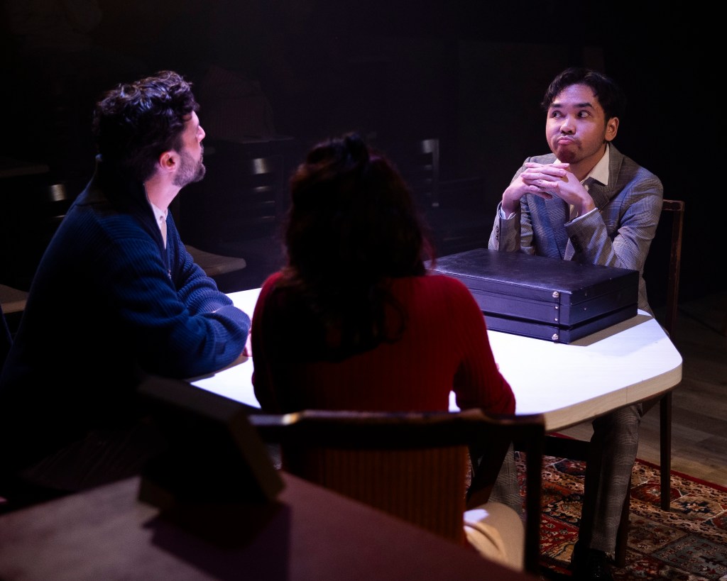 Mavalvala plays the character of Amaliah with sharp humour, her frequent one-liners layering the play with charm – for instance, when the Immigration Officer introduces himself as Ivan, she quickly responds, “How terrible!” Mavalvala’s own musicianship additionally injects her performance with immersion. Antony Makhlouf as Kaveh is impressively introspective, portraying internalised conflict between family, desire, and the self with subtlety. Joseph Raboy plays the supporting characters, managing to embellish each one with distinctive personalities in a standout performance. Mavalvala and Makhlouf possess good chemistry, and Raboy’s consistency garnishes the performances with finesse.